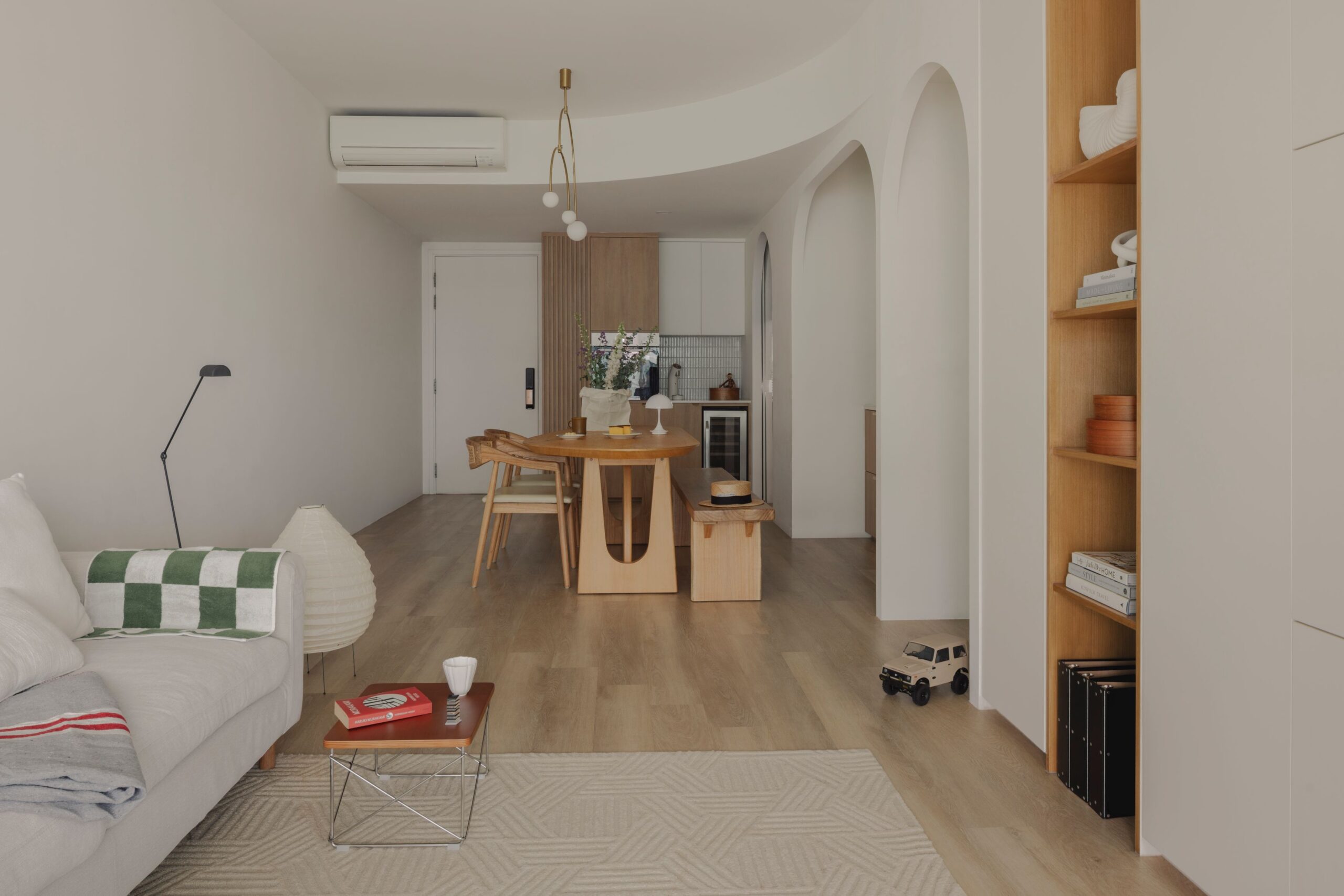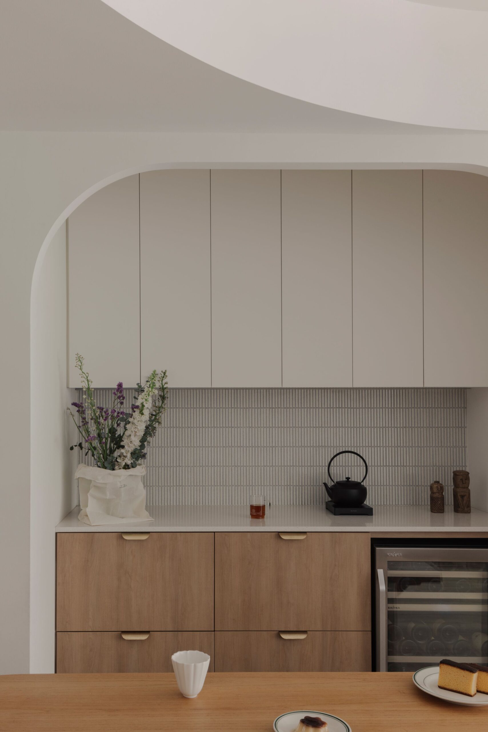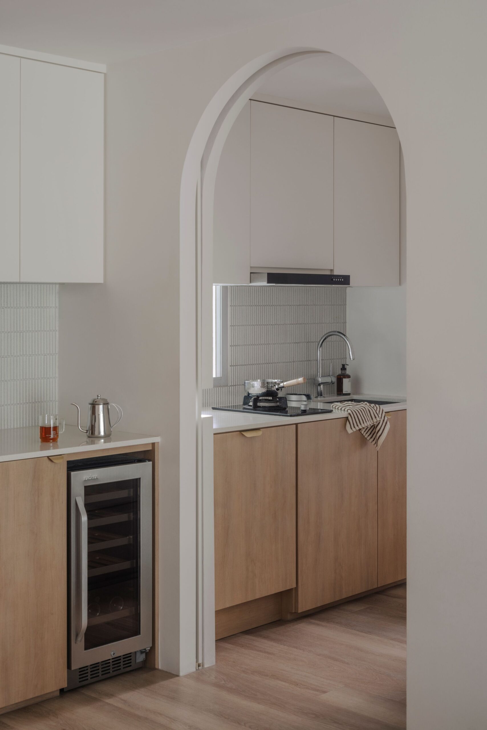 Sun-drenched corners and the soft rhythm of arches define this sanctuary, where sharp lines give way to gentle curves and cool whites are grounded by the organic warmth of birch wood.
